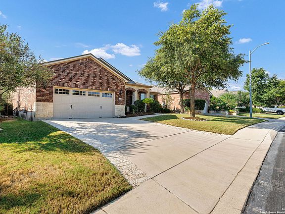 OPEN HOUSE SUNDAY OCTOBER 12, 1-3 PM. IMPECCABLY MAINTAINED HOME IN PRESTIGIOUS DEL WEBB 55+ PREMIER ADULT COMMUNITY. THIS 2678 SQ/FT HOME BOASTS 3 BEDROOMS EACH WITH ITS OWN ON-SUITE BATH; AND ADDITIONAL 1/2 BATH. ELEGANT LARGE TILE FLOORS IN LIVING AREAS, LAMINATE IN BEDROOMS AND DEN, NO CARPET HERE! ELEGANT PLANTATION SHUTTERS THROUGHOUT. SPACIOUS CHEF'S DELIGHT KITCHEN WITH CENTER ISLAND, GRANITE COUNTERS AND AN AMAZING WALK IN PANTRY. NESTLED ON SPRAWLING PRIVATE LOT ON PEACEFUL STREET. OVERSIZED GARAGE, MOVE-IN READY! ROOF AND HVAC REPLACED IN 2021. THE COMMUNITY RESORT CENTER FEATURES BALLROOM, MEETING ROOMS, LIBRARY, STATE OF THE ART GYM, INDOOR POOL AND SPA, 2 OUTDOOR POOLS, PICKLE BALL AND MUCH MORE! IT'S TIME TO PACK YOUR BAGS AND GET READY TO ENJOY THE GOOD LIFE AT DEL WEBB SAN ANTONIO HILL COUNTRY RETREAT!