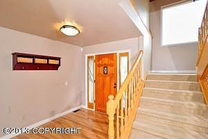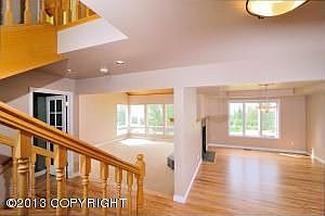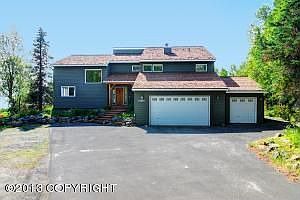 Custom home in Chugach foothills with dramatic views and setting. High quality finishes throughout. Exquisite living area shares two-sided fireplace with formal dining. Kitchen features stainless appliances, well-lighted breakfast area and high utility deck. Large master suite with views. Basement for entertaining and storage with alternative access to 3 car garage.