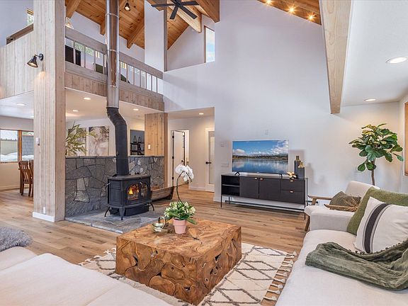 Delightfully and comprehensively remodeled, this adorable retreat is nestled inside Tahoe Donner's prestigious Hillside "loop". Adjacent to the trail system, beautiful forest and natural granite topography views await - and the adjacent lot is HOA open space! Filled with light and windows, the chic ambiance is sure to please! The spacious great room with its wood burning stove and chef's kitchen is perfect for enjoying family and entertaining. In the summer months, the two tier deck overlooks the forest and is the perfect area to admire the alpenglow! The primary suite is located on the main living level and offers a private deck that also connects with the chef's kitchen. A flex room/4th bedroom is great for working remotely with a convenient bathroom nearby. Enjoy the extensive storage and well designed mudroom/laundry area as you arrive "home"! Upstairs offers a large and cheerful loft with more storage. Terrific for guest overflow, a play area or just relaxing this area has so many options! A guest bedroom and a gorgeous second ensuite bedroom is also located on the upper floor. An added plus - a lovely lounge awaits and brings yet another flexible area. Efficiently designed, you'll enjoy easy winter access, the BIG garage and plenty of under the house storage. Artfully designed with craftsman level, mountain modern finishes, all new heating system, electrical, lighting, flooring, kitchen design and so much more, here is a special property sure to please so close to Tahoe Donner amenities! What a GEM!