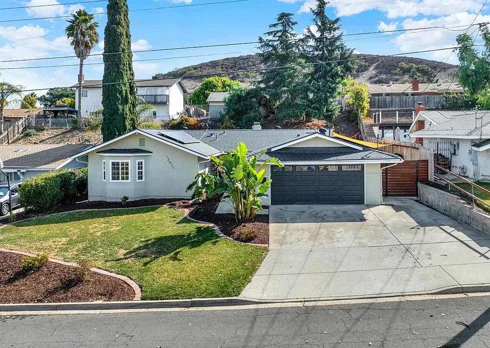 Have you been dreaming of the perfect first home in one of San Diego County's hottest areas? Or are you downsizing to one level living? You're not going to believe everything this beautifully modernized single story home has to offer! With tastefully updated features, a wood burning fireplace, and a giant open-concept living area that is perfect for entertaining and family time! The kitchen features updated cabinets, quartz counters, a cozy breakfast bar and SS appliances too! With four nice sized bedrooms...just wait till you see how BIG the primary suite is, complete with it's stunningly updated en-suite bath, dual vanities, plus a big walk-in shower...and I don't wanna forget the giant walk-in closet either! Beat the summer heat with OWNED SOLAR PANELS and your very own in-ground SWIMMING POOL in your very private fully fenced back yard! Lot's of updated items make this home a great value, including the roof, windows, kitchen, baths, flooring, landscaping and more! The big 2 car garage is currently set up as a workshop with upgraded 220 power for all your hobby needs...and of course there is also an EV charger to boot! This home truly is one of best values you're gonna find in Poway! **2.75% assumable VA loan to qualified buyers***
