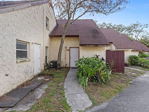 Welcome home to 12611 Touchton Dr Apt 116, a charming 2-bedroom, 1.5-bath townhouse-style condo in the heart of Temple Terrace! Tucked into a peaceful community with cottage-style curb appeal, this 1,012 sq ft residence offers both character and opportunity. Step inside and you’ll be greeted by a bright, open floor plan with tall ceilings that make the space feel airy and inviting. To your right is a cozy kitchen with wood cabinetry and built-in shelving, ready for your personal touch. Just past the kitchen is a convenient half bath, perfect for guests and everyday use. The spacious living room offers plenty of room to relax or entertain and features an in-unit laundry closet for added convenience. There is enough room for a dining space, and a slider that leads out to the PRIVATE BACKYARD space! THE ROOF, HVAC AND WATER HEATER ARE ALL 2021! Upstairs, you’ll find two bedrooms and a full bathroom, each with great potential and flexibility for your lifestyle needs. Whether you envision a primary suite and guest room, home office, or creative space, this layout is ready to become exactly what you need. The community was built in 1979 and offers a quaint, walkable neighborhood setting, complete with a pool! Its location near the University of South Florida makes it an excellent choice for students, faculty, or investors looking for a rental opportunity. With easy access to major roads, local shops, restaurants, and Tampa’s top attractions, you’ll enjoy both convenience and comfort here. This home is a blank canvas ready for your finishing touches. Don’t miss your chance to own a piece of Tampa at this price point. Whether you’re a first-time buyer, downsizer, or investor, 12611 Touchton Dr Apt 116 is ready to welcome you home.
