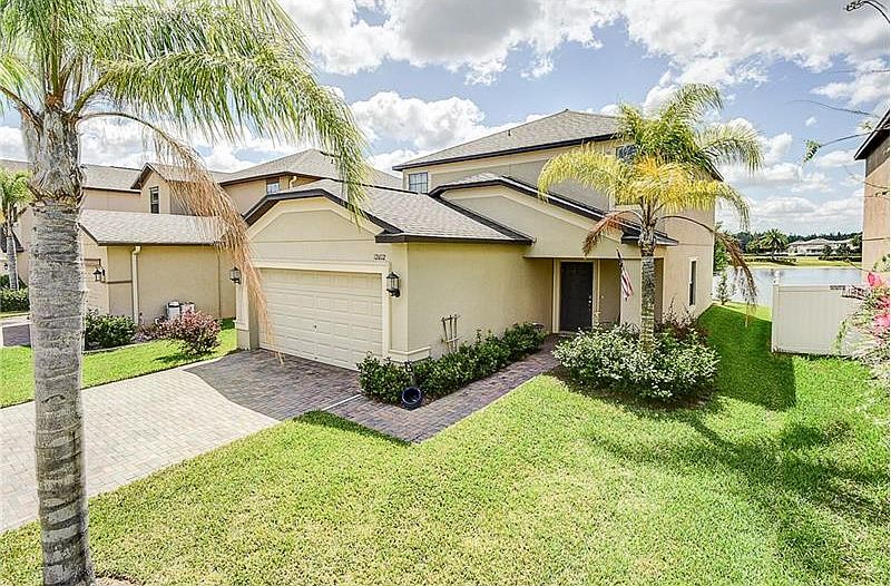 This lovely waterfront home is located in a beautiful gated community in the heart of Trinity, just minutes away from all your shopping and entertainment needs. With easy access to the Veterans Expressway/Suncoast Parkway, and Tampa's Int'l airport, this energy efficient home is pretty close to perfect condition. All three bedrooms, two bathrooms and laundry room are on the second level. Master bedroom suite is large with tray ceiling, a huge walk in closet and fantastic bathroom. Downstairs has an open floor plan great for entertaining with a sliding doors leading to the in-ground pool and beautiful views of the lake. Upgrades include tile floors and crown molding throughout the entire home, stainless steel appliances, granite, wood cabinets, paved driveway and sprinkler system. A UV light in the HVAC system keeps germs gone and dust to a minimum.