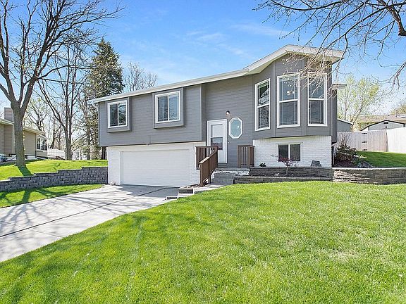 This move-in ready split level is located in a family-friendly neighborhood on a cul-de-sac close to Standing Bear Lake, Kelley Softball Complex, Fareway/HyVee, Target, and other shopping amenities. The main level has carpet, vinyl floors, and vaulted ceilings. The main level also features a fireplace and bonus sunroom! There are 3 bedrooms on the main level including a master bath, plus a full hall bath. The kitchen features vinyl floors, granite countertops, stainless steel appliances, and a pantry. Appliances stay with the home. The finished lower level features a half bath, two storage areas, and a laundry room. Outside you will find a treated wood deck leading to a concrete patio overlooking landscaped garden beds, a fenced-in backyard, and a 12x12 insulated shed. The garage refrigerator stays, chest freezer does not.