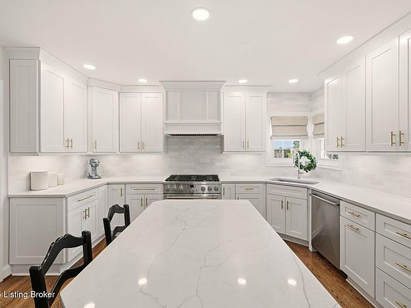 Welcome to 12613 Ridgemoor Drive, a beautifully updated ranch located in the highly sought-after North Oldham School District. As you step through the front door, you'll immediately notice the new and refinished hardwood floors that flow seamlessly throughout the open-concept main living spaces. The formal living room offers a cozy fireplace and is filled with natural light from large windows overlooking your private backyard and patio. The renovated kitchen is a showstopper, featuring custom cabinetry, quartz countertops, and top of the line stainless steel appliances. Just off the kitchen, the inviting hearth room offers a second fireplace framed by custom built-in shelving—a perfect spot to relax or entertain. The laundry room and half bath have also been fully updated, each featuring quartz countertops and custom cabinetry. All bedrooms feature carpeting that is only a few years old. The carpet in the bedrooms has been professionally cleaned, creating a fresh and comfortable feel. The finished lower level offers an abundance of additional living spaceideal for entertaining guests, a play area, or a home gym. You'll also find two additional rooms that could serve as bedrooms (non-conforming due to egress requirements), a full bathroom, and a spacious storage area. This home perfectly blends style, comfort, and functionality in one of Oldham County's most desirable areas. Schedule your private showing today!