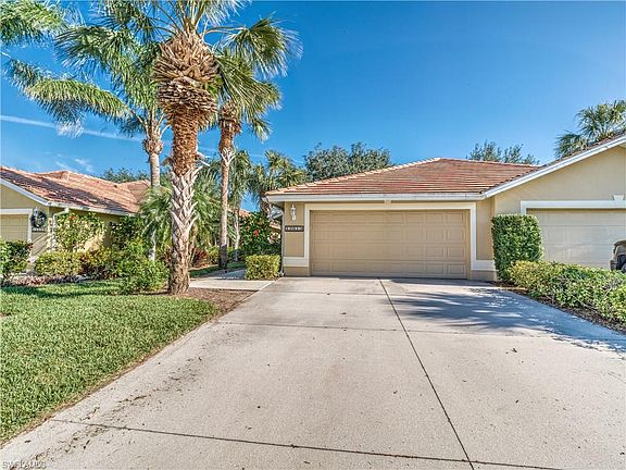 Plenty of room in this spacious, 2 Bedroom +Den, 2 Bath Villa Home. These villas do not come on the market often. This is the bigger unit with 1,854 sq.ft of living space. Keep your cars out of the sun in a full sized 2-Car attached garage. The Master Suite features his and hers Walk-In Closets. The Master Bath has Walk-In Shower and Tub with Dual Sinks. Kitchen has a large Breakfast Bar with two Pantries. There is a Formal Dining Room and a space for an Informal Dining area. Make the Den your at-home office or fun area. There is the Large Living Room for your big screen TV. Screened Lanai overlooks an extended green space. The AC was replaced January 2021. A new Hot Water Heater just installed on December 10th. Enjoy the amenities in the beautiful gated community of Stoneybrook of Gateway. The low HOA Fees take care of the clubhouse, pool, spa, basketball, fitness center, pickleball, tennis courts, volleyball, park, manned security gate, among others features, all included! Digital Cable for 5 TVs & Fiber Optic Internet, Lawn & Lawn Landscaping, some exterior maintenance! Come to Stoneybrook of Gateway to enjoy the Florida Lifestyle.