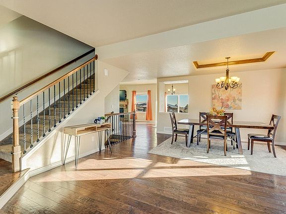 The kitchen overlooks the large family room with cozy fireplace, which flows into the main level office through double French doors. Upstairs the spa-like 5-piece bathroom becomes a personal sanctuary with its large dual sink vanity, soaking tub and walk-in closet, Pikes Peak views from the large Master bath window. A total of 4 bedrooms on the second story keeps everyone together. The finished basement is a great space for casual entertainment. An additional full bathroom serves this level, while an unfinished area has potential for a bonus room or extra storage.