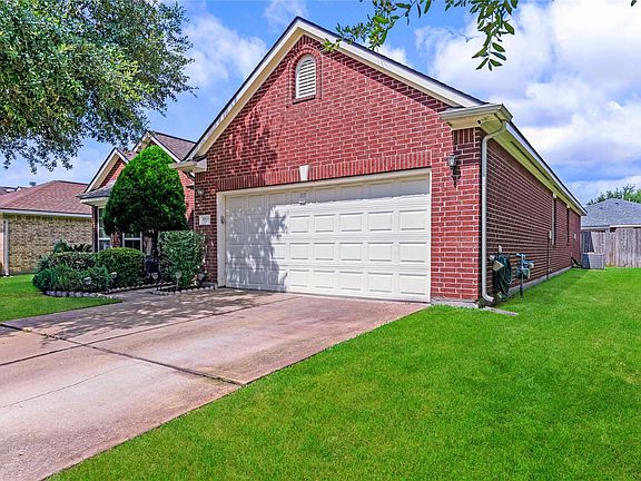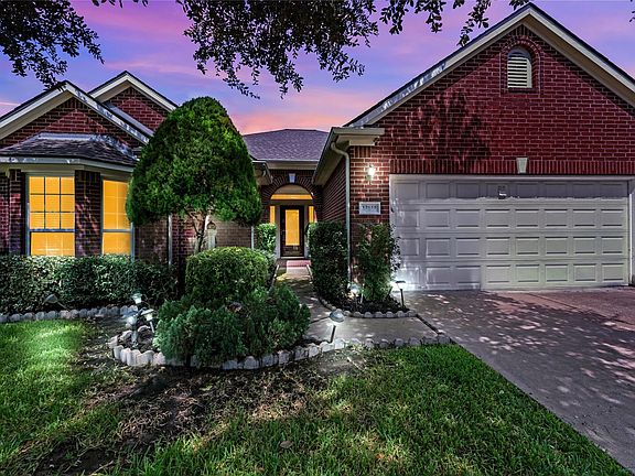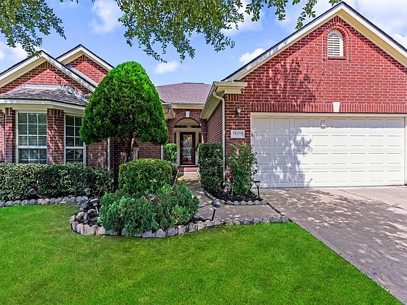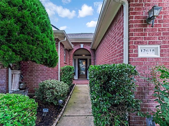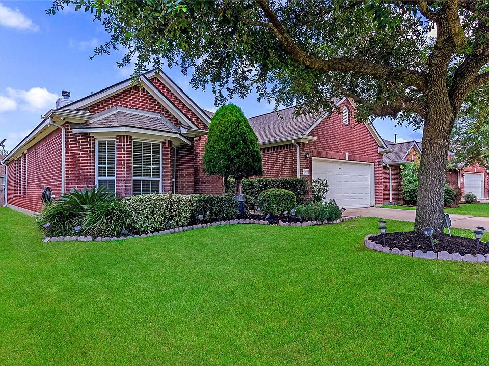 Red-brick homeTwo fireplacesAttractive front lawnStriking chandelierCustom-painted ceiling medallionElegant gold accentsOpen-concept design