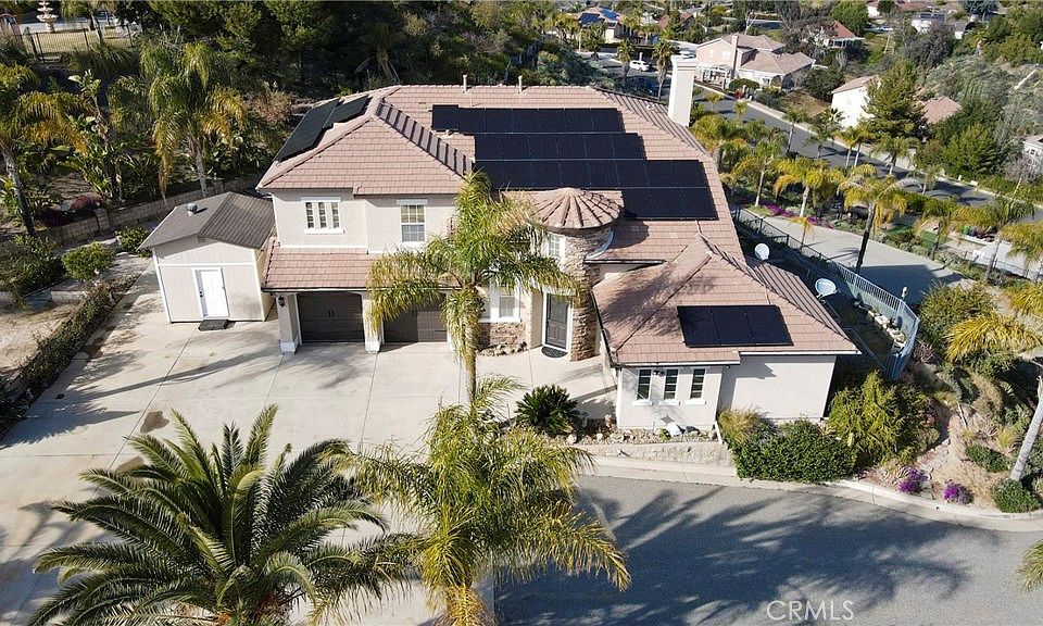 Views, Views, Views. Your Dream POOL Home awaits. Welcome to this stunning 5-bedroom Home sitting on almost a Full 2 ACRES with stunning amenities, located in one of the most prestigious neighborhoods in Riverside, known as "The Orchard View Estates.” Everything about this home screams luxurious living. This home is the status symbol of pride of ownership & the owners have spared no expense. Once you’ve entered through the private wrought iron gates, you’ll be escorted up your private driveway towards your castle in the sky, with the ability to give you views throughout Riverside extending to the San Bernardino mountains. This gorgeous home has 3 car garages w/ paid off solar. Along with its exquisite views, this home has a large flat pad adjacent to the driveway that can be easily used as additional parking or future ADU. The landscaping all around creates a perception of privacy & luxury. The yard entails beautiful trees, bushes & palms, with the majority of landscaping fully irrigated with timers for easy care & maintenance. As you enter this phenomenal pool home, you’ll experience the breathtaking views from the family room & kitchen as well, which oversees the private backyard that accommodates a built-in B-B-Q & water fountain. This step-up patio was truly meant for entertaining & high living. The separate pool oasis provides a private getaway so you can spend your cool days in the shade & in the water during those summer months. The exterior grounds alone are breathtaking, but this is just the beginning. This home also includes custom interior paint, newer flooring & a remodeled kitchen. The newly redesigned kitchen features whitewashed antiqued cabinets with Taj Mahal Quartz countertops with custom backsplash & lighting. The oversized island has an inlaid sink that allows you to intake the beautiful views from the family room & breakfast nook area. The dining area is right off the kitchen across the butler’s walk through & there is also a private laundry room, washroom & bedroom on the northwest side of the home. The entry of the home opens into the living room that leads you up to the master bedroom with the additional 3 ba. totaling 5 bed for a large family or multi-generational home. The master bathroom has a custom shower area along with a built-in jacuzzi tub that opens into the walk-in closets with custom-built shelving. The upgrades are endless in this luxurious castle in the sky. We welcome you to see this masterpiece...