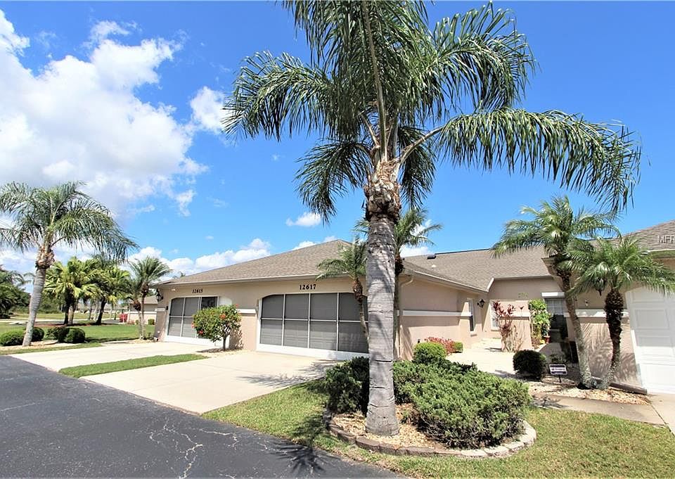 This 3 bedroom, 2 bath villa with 2 car garage overlooks beautiful lake and is located in the golf course community of Villas of Kings Crossing. Spacious villa has over 1700 square feet of living space with decorator lighting, soaring vaulted ceilings, plantation shutters and skylights throughout, and plant shelves. Open and bright floor plan offers split bedroom floor plan with inviting foyer, living and dining, eat in kitchen, and Florida room. Dining area has wet bar, and eat in kitchen boasts task lights, tiled back splash, 3 door refrigerator, breakfast bar, and opens to the dining area. Living area opens to tiled Florida room with wall to wall windows with expansive view of lake and golf course. Master suite has 2 walk in closets and private bath with walk in shower and dual vanities. Huge laundry room with washer, dryer, walk in pantry, cabinets, utility tub and closet pantry. 3rd bedroom adjacent to foyer could be used as an office, den, or media room. Air conditioned garage completes the package. Lovely curb appeal with courtyard entrance and mature landscaping. This lake front condo is spacious, bright, and airy and located in a quiet and well maintained neighborhood. Community amenities include heated pool. Proximity to waterways, local beaches, dining, shopping, and golf courses makes this property ideal for the Florida lifestyle. Easy access to public parks with bike and walking trails and picnic areas, and boat ramps providing access waterways, Charlotte Harbor, and the Gulf of Mexico.