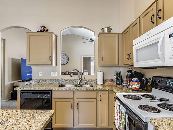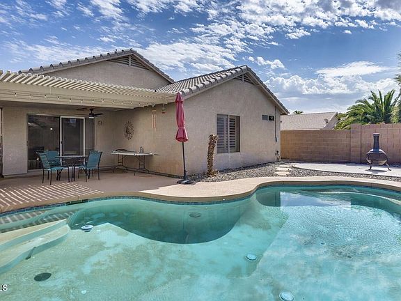 Beautifully maintained 3-bedroom, 2-bath home featuring a private pool and covered patio perfect for Arizona living! Enjoy vaulted ceilings, granite countertops throughout, and tile in all the right places. The updated kitchen includes modern appliances and opens to the spacious great room filled with natural light. Primary suite offers a walk-in closet and private bath. Low-maintenance landscaping front and back. Conveniently located near shopping, dining, schools, and freeway access.