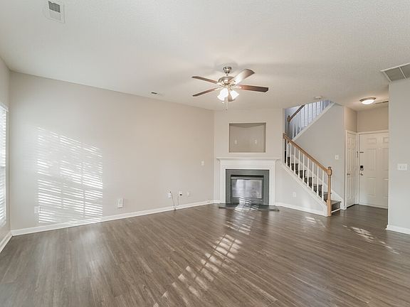 This three-bedroom, two and a half-bath rental home in Charlotte, North Carolina is located in the vicinity of Mallard Creek Park. The open floor plan features a spacious kitchen with stainless-steel appliances and an island that provides additional seating and workspace. The kitchen opens into the living room, which includes a corner fireplace next to the open staircase. Doors open out onto a deck that is perfect for entertaining, as it overlooks the backyard. Upstairs you will find an oversized master bedroom complete with a walk-in closet and ceiling fan. The attached master bath has double sinks, a separate shower and tub, and another walk-in closet. The remaining bedrooms offer cozy carpet and plenty of room. Call to schedule a tour of this rental today. Utilities must be transferred into the resident's name.