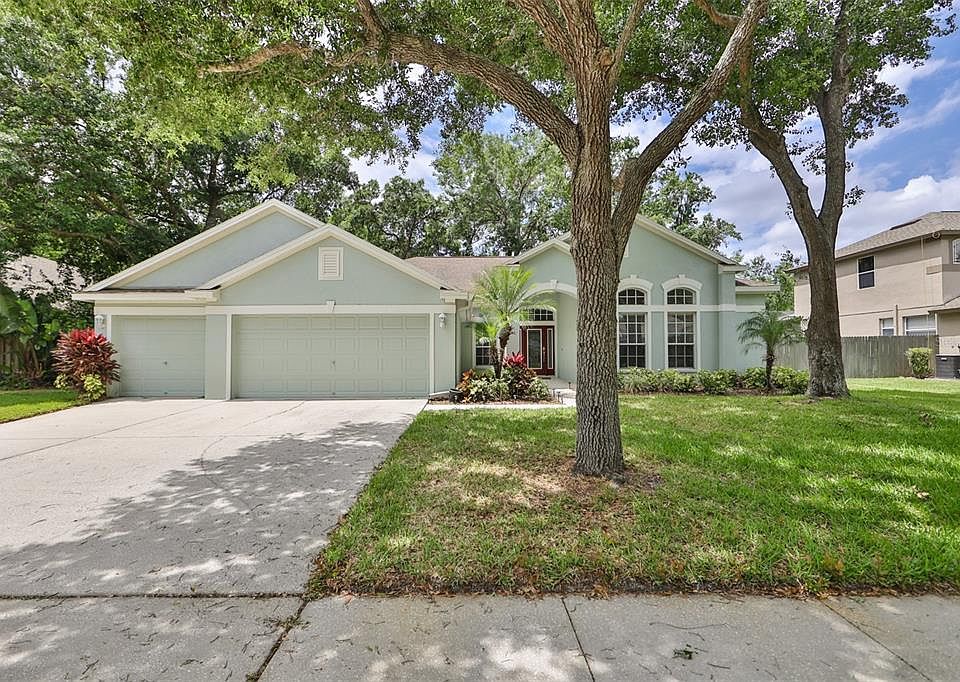 Come live in Paradise! This gorgeous ONE-STORY home is located in the desirable gated community of Riverglen right in the heart of Riverview. Home Sweet Home! This amazing home offers 4 bedrooms, 3 full bathrooms, an office, formal dining room, kitchen that opens to a large living room and a formal sitting room. Once inside you will be greeted by an amazing open floorplan with high ceilings and open spaces. Welcome to the kitchen where sweet memories are being made. The kitchen is seasoned with love and is perfect for entertaining your guests, featuring lots of cabinets and extended counterspace. The kitchen is the heart of the home. The fondest memories are made when gathered around the table. Enjoy hosting elegant dinners in the formal dining room or enjoy a quick meal in the breakfast nook. The 3-way split floorplan is perfect for your extended family with owners retreat on one side of the home with 3 bedrooms and 2 full bathrooms on the other side of the home. This home is full of endless possibilities. Master suite offers a large walk-in closet. Master bathroom offers garden tub, walk-in shower, and dual vanity sinks. Life is too short to fold fitted sheets but convenient in the large laundry room with plenty of storage. The garage has plenty of space so bring your toys, bikes and extra vehicles to store in the 3 car garage. Enjoy outdoor living at its best. Plant your wishes, play in the dirt, spend time with the family and pets with a fenced in backyard. Time spent on the lanai is time well spent. Relax and enjoy as there will be a lot of sipping, grilling and chilling with an amazing lanai overlooking the peaceful backyard oasis. The seller offers a $10,000 credit to update the flooring and bathrooms. The roof was replaced in 2018, and the AC unit was replaced in 2017. Private gated community with low HOA & NO CDD. This home is conveniently located close to shopping, Downtown Tampa, Busch Gardens, Macdill Airforce Base, Sarasota, Beaches, restaurants, US HWY 301, US HWY 41, I-75 and minutes from Alafia River Ramp. Call today