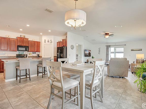The open-concept layout begins with durable ceramic tile flooring throughout the main living areas, creating a clean and inviting atmosphere. The kitchen serves as the heart of the home, complete with ample cabinetry, a convenient closet pantry, a full appliance package, and a large center island with sinkperfect for meal prep, casual dining, or hosting friends and family.