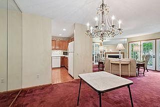 Prime location. 2BR+Den, 1+3/4 BA, all living facilities on 1-level + no steps at private front entry. Manor home corner unit. Similar to townhome living. Fireplace. Walk out from open living room to Private Patio area, nice views. Parquet floors in Kitchen, Den & Foyer.