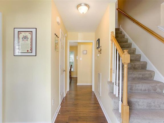 Welcome! You are going to fall in love with this immaculate 4 BR, 2.5 bath Colonial in the sought after neighborhood of Cameron Bay. Once you arrive, you are sure to notice the charming front porch, easy to maintain vinyl siding, paved driveway and single car garage. Enter the front door to find newly installed engineered hardwoods on the entire first floor. On the left, an elegant dining room that leads to a gorgeous eat-in kitchen with beautiful cabinets, granite countertops and backsplash. To the right, you will enjoy the spacious family room with an additional room with French doors that is currently being used as an office. Large laundry room and ½ bath complete the first level. Upstairs is a HUGE Master Suite with walk-in closet and a Master Bath with a large garden tub and separate shower. Down the hall you will find 3 more generously sized bedrooms, and wait for it....another large Bonus Room that is currently being used as a 5th bedroom. Enjoy cookouts on the back deck overlooking the park-like yard. Great place for entertaining. And there is more....You will appreciate the large back-yard shed with tons of space for extra storage. This home has so much to offer! Must tour!