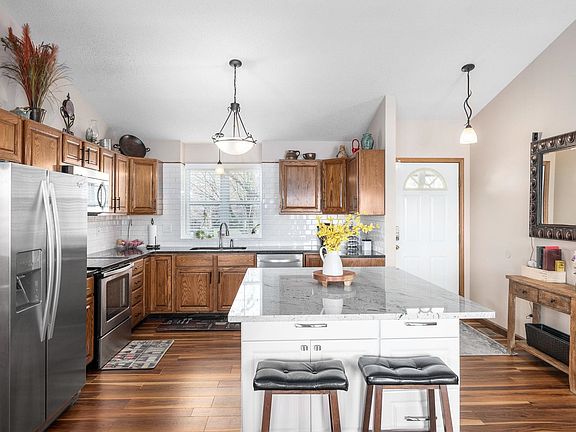 Nestled at the end of a tranquil cul-de-sac, this stunning home boasts an enviable position overlooking the finest pond showcase in town. Immerse yourself in nature with a nearby walking path leading to the park, while enjoying front-row seats to the picturesque Auburn Hills golf course. Inside, the home has undergone thoughtful updates, featuring an exceptional open floor plan that maximizes the panoramic pond views. Watch as deer, turkey, and eagles grace your backyard, creating unforgettable moments from the comfort of your own home. The basement offers a walk-out basement with view-out windows, providing even more opportunities to savor the serene surroundings. Step outside onto the expanded deck, perfect for indulging in pond viewing pleasures and soaking in the beauty of your surroundings.