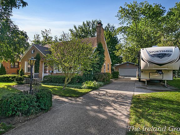 VERY LITTLE TRAFFIC and seller says quiet neighborhood! This part of 32nd St is not a through street! Beautiful brick bungalow has been meticulously maintained by the sellers for many years. Walk into the living room with wood burning fireplace and big bright front window. Dining area with open kitchen, white cabinets with inset glass and custom built ins. 4 season room over looks a park like backyard with tiered deck, pergola, shed and water feature. 2 bedrooms and a bath complete the main floor. Upstairs are 2 more bedrooms. The full basement is finished, family room with fireplace, bathroom, work shop, laundry and ample storage space. Super location close to the Wyoming library and shopping on 28th St.