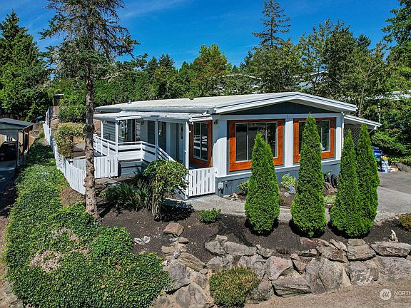 This remodel in the Holly Hills community features a 3 bed, 2 bath, ADA accessible layout. From fresh paint throughout, to new flooring and stainless steel appliances, new cabinets/quartz countertops; you will be in love with the bright interior and stunning views. Roomy primary and junior suites each include their own full bathroom. All new, double panes have been added to the windows. The exterior features professionally landscaped front/back yard, with all new exterior paint, huge deck with mountain views and a covered carport with space for 4 vehicles, and extra driveway space. Your fenced backyard comes with a bonus space; a cute shed wired with electricity and brimming with potential! In award-winning, Northshore school district.