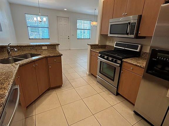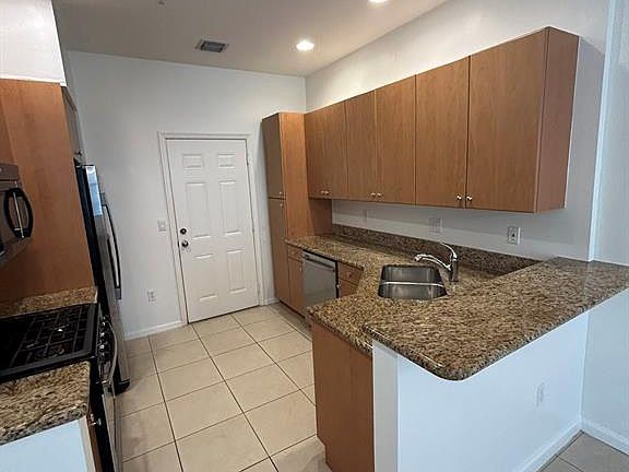 Granite countertopsCeramic tilesBrand new carpetWood cabinetsStainless steel appliances