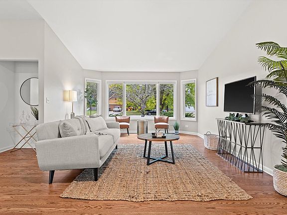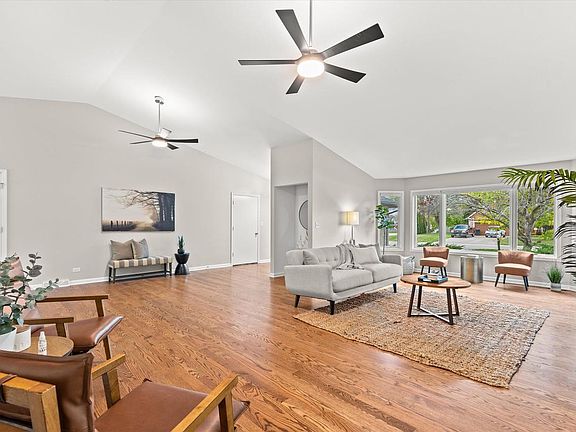 Stunning fully renovated ranch near Rock Lake! This beautiful home has been completely redone from top to bottom, offering modern design and thoughtful details throughout. Enjoy vaulted ceilings, rich hardwood floors, and an abundance of natural light throughout! The open floor plan includes 3 spacious bdrms & 3 full baths, featuring a luxurious primary suite with a massive walk-in closet & spa-like bath with two showers & double sinks. The lower level is framed and ready for your finishing ideas, complete with a full bathroom and walk-out access. Plus an oversized garage a bonus side-door! Sitting on a large corner lot with mature landscaping, this home features a long list of improvements, including a new roof, plumbing, electrical, appliances, Pella windows, and ALL new interior!