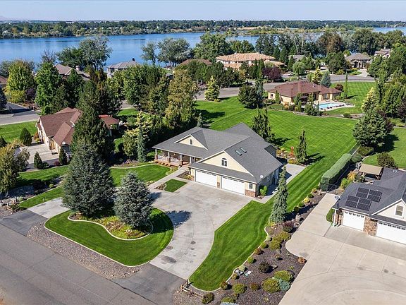 MLS# 287593 Welcome Home to 12621 Jayleen Way, Pasco Discover unparalleled elegance and comfort in this custom-built sanctuary, lovingly maintained by its original owners. Nestled on a picturesque 1-acre lot, this 4-bedroom, 3-bathroom residence offers peek-a-boo views of the majestic Columbia River, ensuring every sunrise and sunset is a sight to behold. Custom Design: Crafted with attention to detail, this home boasts unique features like a custom wrapping paper cabinet, a full walk-in Christmas tree & ornament closet, and a laundry room complete with a built-in desk, cabinets, and utility sink. Spacious Living: Expansive front porch with stunning south-facing views, alongside a large covered back patio with vaulted rooflines, perfect for relaxing by the impressive water feature amidst mature landscaping. Garage & Workshop: The attached 3-car garage includes a shop area with storage cabinets and a variety of tools, with potential conversion to a 4-car garage as needed. Modern Comforts: Recently updated high-end HVAC system ensures top-notch indoor air quality. The home is equipped with built-in speakers, extra lighting, and large windows to maximize natural light and scenic views. Outdoor Serenity: Enjoy bird watching, river views, and occasional deer sightings from your own backyard oasis. Drain field and septic location will allow room for pool or additional shop. This home is the epitome of refined living, combining luxury, functionality, and natural beauty in a way that is not easily replicated. Don’t miss the opportunity to make this exceptional property your forever home.