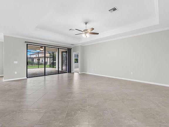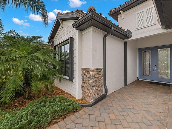 Welcome home to Hampton Park in Gateway, Fort Myers! This exquisite Somerset model by Lennar welcomes you through French Doors or your 3-car garage enhanced with motorized ceiling storage bays. The open concept design blends with private retreats, including primary & secondary suites, a third bedroom and a home office both adjacent to a 3rd full bath. Kitchen upgrades including pullouts in cabinets, newer refrigerator, and BOSCHE dishwasher, create an inviting space for the chef. Tray ceilings, tile floors sealed/tinted grout, and custom blinds on sliders elevate the home's ambiance. Outdoor living is a delight w/ WATER VIEWS, EXTENDED screened lanai with pavers, and FENCED backyard w/ room for a pool. Safety and convenience are paramount, the property is located in an X Flood Zone with windows equipped w/ ACCORDIAN SHUTTERS, ELECTRIC STORM SHUTTERS & SCREEN, and a GENERATOR with a 500-gallon tank. Hampton Park has gated & guarded entry, resort-style amenities, including a pool, pickle ball, fitness center, & more. Gateway provides additional perks - golf & country club & proximity to shopping, dining, I-75, Jet Blue Park/Fenway South, & RSW/SWFL airport.