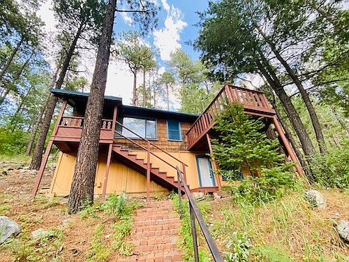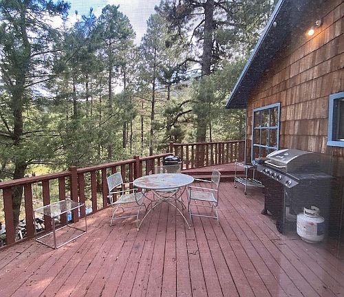 Short term rental! Gorgeous four bedroom, two bath fully furnished cabin located in the heart of Mount Lemmon's Summerhaven community. Features a hidden entry right off Sabino Canyon Park Road that gets you to an over creek bridge. The staircase leads up to this cozy yet modern hillside cabin nestled among large pine trees. Enter into a large living area that flows nicely into the open eat in kitchen with views from every window. The split bedroom plan features three bedrooms in the elevated main house with the fourth bedroom located on the ground floor with its very own private entrance. Enjoy the wrap around outdoor balcony that overlooks the forest. Down the street from to the newly renovated Hotel/Lodge, restaurants, coffee nook and famous the Cookie Cabin with a short drive up to Ski valley. This is a short term rental and term of occupancy is based on owner approval. Application must be submitted and approved prior to scheduling an in person viewing with an agent. Contact Rincon Ventures 881-2258 or text Monica 401-9327 with any questions or to inquire about submitting an application. $1000 Deposit due in advance with $500 of said deposit being a NON-Refundable cleaning fee. Advertised rent is based on a monthly rent for a minimum of 1 month and maximum of 3 months upon owner approval.. Weekly rent is $1200/wk for up to 3 weeks. All terms must be owner approved. Contact us to schedule a showing.