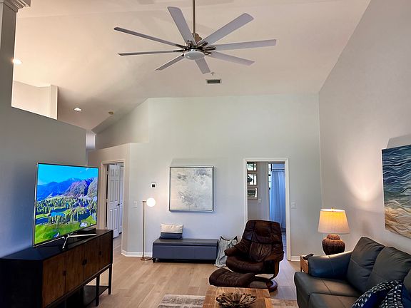 Beautiful 2 bedroom 2 bathroom 2nd floor condo, with new queen-sized sleeper sofa in living area. Unit sleeps 6 comfortably. High vaulted ceilings throughout. New recessed lighting in the fully stocked kitchen. Enjoy new ceiling fans in both bedrooms, lanai and living room. New hybrid waterproof flooring throughout the unit. TV's provided in bedrooms and living room with Comcast service. Roku service in living room set to guest mode.