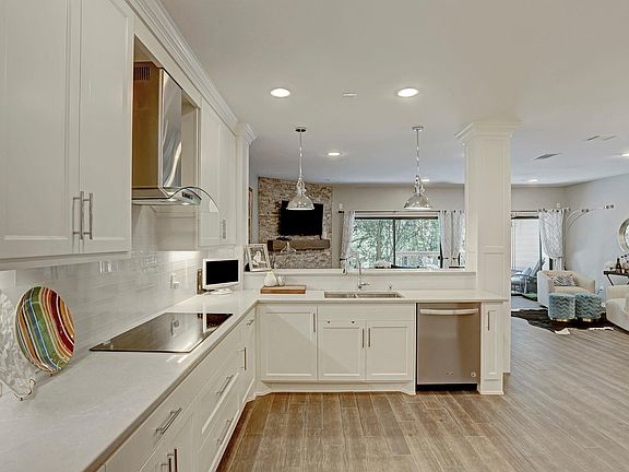 Stacked stone gas fireplaceSecond gas fireplaceFlexible office spaceOpen-concept floor planStainless steel appliancesQuartz countertopsGlass subway tile backsplash