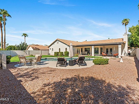 Out back, enjoy a lush green yard, expansive covered patio, and a sparkling pool and spaideal for year-round enjoyment.