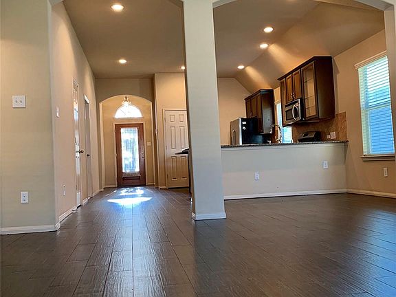 This beautiful home features stunning architectural accents and graceful archways that flow throughout the interior. The formal living and dining areas are enhanced by custom designer lighting, creating an elegant and welcoming atmosphere. The spacious island kitchen boasts oversized cabinetry, granite countertops, a ceramic tile backsplash, and upgraded tile flooring that seamlessly extends into the utility room.The master bath is a true retreat, complete with a separate glass-enclosed walk-in shower, a relaxing garden tub, dual cultured marble vanities, and a custom lighting fixture that adds a touch of luxury. Outdoors, the fenced backyard provides a private space for relaxation and entertainment. This home is non-smoking. This owner does not accept vouchers.