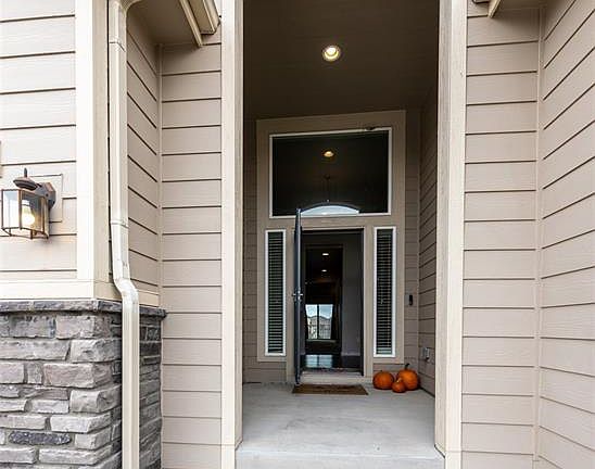 Prepare to be wowed! South facing, spacious rancher features cement siding with stone accents, covered front porch, storm door, formal entryway, wood floors, 9 & 10 ft ceilings on main level, coffered ceilings, large great room which walks out to composite rear deck, modern kitchen with espresso stained cabinets, 42" uppers, island, breakfast bar, granite counters, pantry, stainless appliances including gas range, island with granite sink, office with French doors, master suite with private 5-piece bath and walk-in closet, gas fireplace, finished basement with 9 ft ceilings, extended family room, good size secondary bedrooms, central air conditioning, security system, Ethernet wired in EVERY room which includes an 8-port switch in basement (providing gig speed in all rooms), PAID FOR Solar Panel System 10kwh-installed in 2023 which provides substantial savings on electric bills and includes transferrable warranty and bird netting protection. Exterior grounds include professional landscaping with auto-sprinkler, lawns, shrubs, trees, rock borders and lower-level concrete patio, firepit and backyard playset. Great location... close to parks, schools, Meridian Ranch recreation center with pools, and blocks from the new Fieldhouse indoor soccer field. *click on both virtual tour links to see more