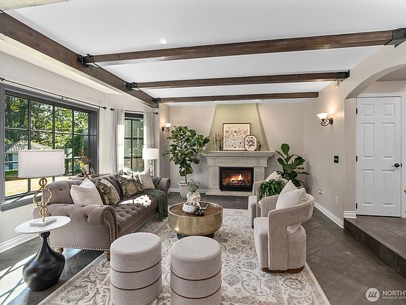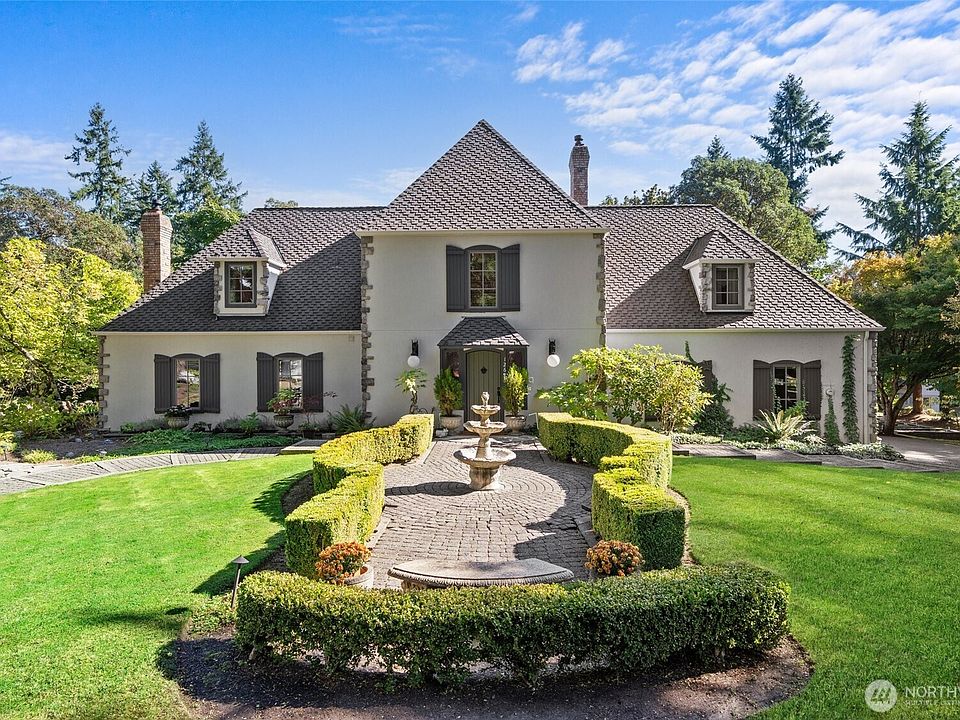Step into the extraordinary, with this one-of-a-kind chateau and its wrought iron gated entry, lighted cobblestone paths, creeping ivy and gargoyle lanterns. Inside, you'll find the perfect blend of dark slate tile floors and rustic exposed beams, softened by glowing fireplaces, streaming natural light, and cozy coved ceilings. This west-facing, 1.49 acre estate is a gardener's dream with multiple outdoor entertaining spaces, garden beds, greenhouse, wired shed, and sprinkler system. Everywhere you look, charming details and updates abound, including a newer roof, kitchen, bathrooms, furnace, tankless water heater, and more. Just minutes to walking trails, St. Edwards Park, Juanita Beach, and Totem Lake Center - this home truly has it all!