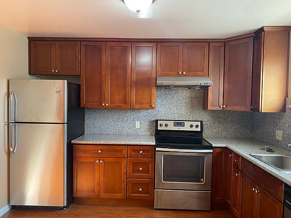 Full apartment paintKitchen with granite countertopGood floor planLaminate floorStainless steel refrigeratorNew cabinetsNew tile floor