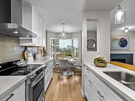 Woaw…the West End enchants once more! Quietly set on the quieter side of this boutique, fully concrete rainscreened bldg, this 1002 sqft corner home shines with light, elegance, and that certain je ne sais quoi. A welcoming foyer opens to beautifully renovated spaces where modern comfort meets timeless style. Two spacious bed at opposite ends, two full baths, and open living areas create the perfect blend of entertaining ease & cozy evenings by the gas fireplace. Enjoy your 80 sqft covered balcony year-round—espresso or evening wine included. Extras: low turnover, RENOVATED GUEST SUITE, in-suite laundry & storage, pet friendly (1 cat or dog), visitor parking, and exceptional maintenance. Easy living meets West End magic! Check our video, set y/private viewing or come to our open houses!