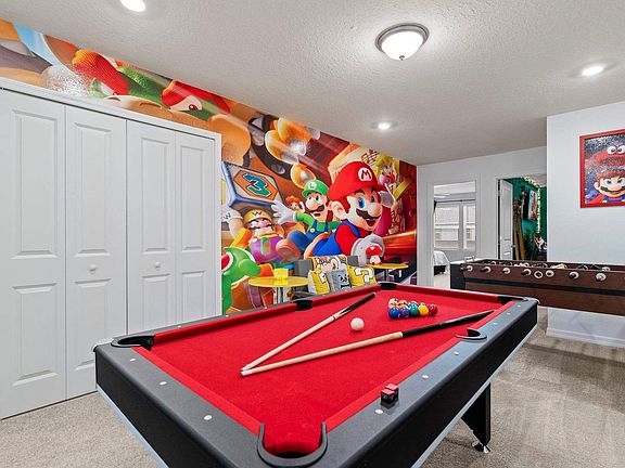Private heatable poolMickey-themed king suiteMario bros-themed game roomSpacious patioToy story roomHarry potter-inspired king bedroomLilo and stitch room
