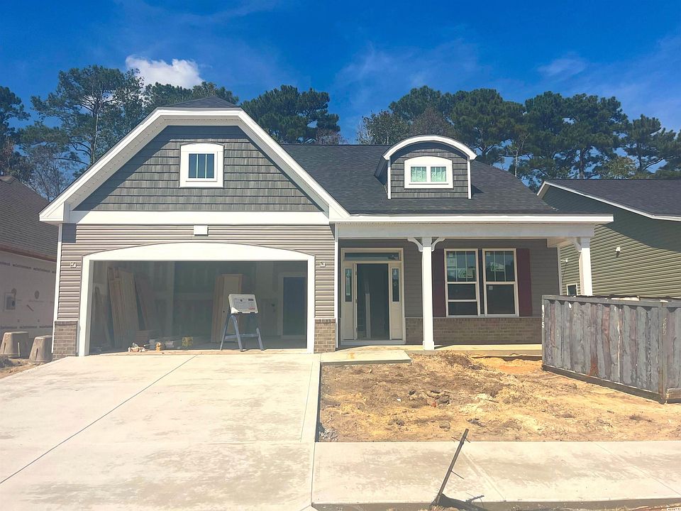 Our newest addition to our home plan line up. The Kent plan has 4 bedrooms, bonus and 2.5 full baths with laundry room. We have added a Covered porch. Our design team has added the following designer features to this home. Laminate flooring in the living areas. Carpet in the bedrooms and bonus room. Upgraded granite to the kitchen. Tile in both bathrooms. Luxury style White cabinets with stylish chrome hardware. Comfort height toilets. Full sod. 30 architectural shingles. Upgraded trim. The exterior color pallet is Storm with Charcoal Smoke accents with black roof and Sommelier front door color. The shutters are a Bordeaux and a Bessemer gray brick. Too many features to list! Call for more information. Estimated Completion Early Summer 2025. Fantastic location with easy access to 14 gold courses within a 7-mile radius and close to both North and South Carolina beaches, restaurants and shopping! "Photos are of a similar Harmony home. (Home & community information, including pricing, included features, terms, availability and amenities, are subject to change prior to sale at any time without notice or obligation. Square footages are approximate). Photographs, pictures, colors, features, and sizes are for illustration purposes only and will vary from the homes as built.