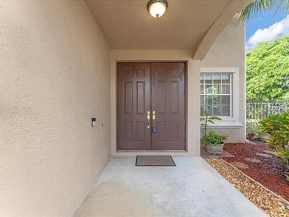 Sitting an oversized lot in the prestigious Madison Green community, largest model in Wyndham, this Berkley Five model has been thoughtfully updated and beautifully maintained. The updated modern kitchen features sleek cabinetry, stainless steel GE appliances, and ample counter space -- perfect for entertaining or enjoying family meals. You'll also love the updated LED lighting throughout, bringing energy efficiency and a warm, inviting glow to every room.Step outside to your own tropical oasis, complete with mature mango trees and plenty of space to relax, garden, or play.As a Madison Green resident, you'll enjoy resort-style amenities, including a clubhouse, fitness center, sparkling pool, tennis and basketball courts, playground, dog park, and scenic walking trails. The HOA includes plenty of bang for your buck, in addition to the amenities the HOA fee includes cable and high speed internet, all for just $251 per month.