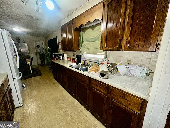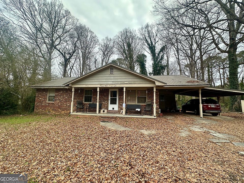 Welcome to 1263 Highway 16 East, Jackson, Butts County, Georgia. This charming brick-faced home features 3 bedrooms and 1 bathroom, offering over 1,400 square feet of comfortable living space. Exterior highlights include a durable metal roof, a classic rocking chair front porch, a carport, and a parking pad. Situated on a spacious 0.65-acre lot, the property provides ample room for gardening, outdoor activities, or even keeping chickens. Currently leased on a month-to-month basis. Please do not trespass or disturb the tenants. For more information, contact the listing agent.