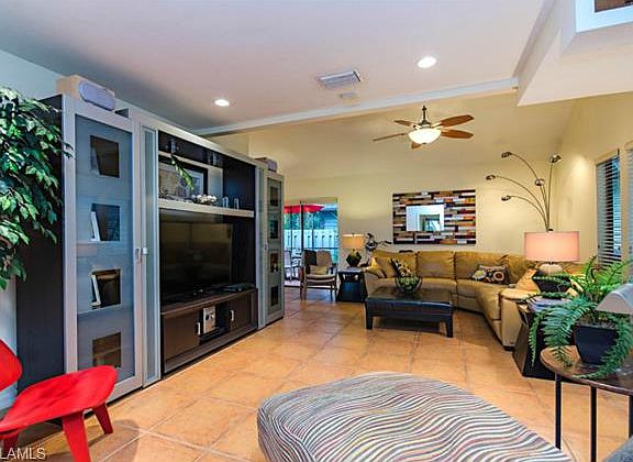 V.2073 - A must see hidden gem that is centrally located in Naples within walking/biking distance from shops and beaches. This corner unit is completely remodeled with granite countertops and stainless appliances in kitchen. There are two master bedrooms, one on ground floor and one upstairs. Ground master has a jetted tub and walk-in closets. There are three outdoor sitting areas looking at lush landscaping and the lake. Outdoor deck looks on to the lake for an unbelievably peaceful haven or for entertaining. There is truly no other villa like this in Naples.