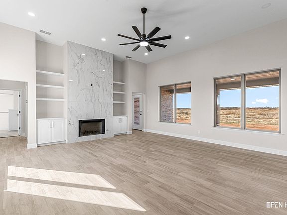 Set on just over 3 acres in Iowa Park ISD, this thoughtfully designed home offers modern comfort and country views. Open living area with wood-burning fireplace and wood-tile flooring flows into a spacious kitchen featuring a large island/breakfast bar, quartz countertops, farmhouse sink, gas range, built-in oven & microwave. Isolated primary suite with spa-like bath and walk-in closet. Two additional bedrooms plus full bath. Large covered back patio with TV hookups and gas grill connection