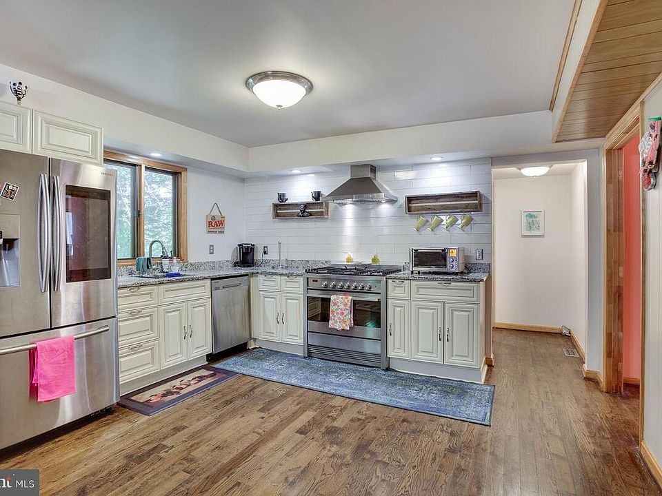 Diamond in the rough only a stones throw away from the bay. Enjoy your winter views from the porch with the peace of being at the end of a cul-de-sac. If you need space this is the place 3 generous bedrooms upstairs plus a first floor bedroom with a full bath. Hardwood flooring throughout. All 3 baths have been upgraded to include vinyl flooring. Lovely open kitchen with stainless steal appliances and granite counter tops plus back splash. Complete bsmt to your specification already partially drywalled, bathroom is installed even has a beautiful barn door to fifth bedroom. Partially fenced in side yard. This is not just a drive by must go in to appreciate. Priced to sell! Don't miss your opportunity!