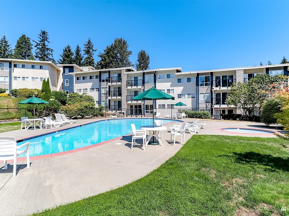 Prime location in the heart of Bellevue! Just minutes from Downtown Bellevue, Spring District, and countless shops, restaurants, & amenities, this cozy condo offers ideal in-city lifestyle living! Don't miss this beautiful 2 bed 1 bath Top Floor unit, Light and bright! New floors with spacious living room, dinning room and brand new deck. One designated parking and lots of visitor parkings, outdoor pool, clubhouse, exercise facility & trails. Whole new exterior, new plumbing, new roof!! Seller paid off Special Assessment in full! Light rail 2023 and community upgrades 2022! Come check it out today!