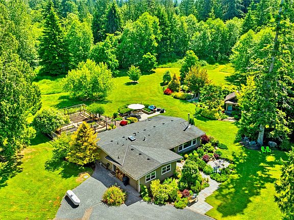 Escape to a private & pre-inspected paradise in this remodeled rambler above the stunning Snoqualmie River Valley & nestled on 5 flat, sun-drenched acres of professionally designed deer-resistant landscaping, lush lawns & meadows! Light-filled interiors blend comfort & style with/ thoughtful updates throughout. Kitchen/dining open to great room w/ cozy wood stove & french doors connect you to outdoor spaces! Step back in time w/ 36x36 barn; perfect for hobbies, events, storage or animals, & detached garden studio ideal for office, art, or peaceful retreat. Whether entertaining under the open sky, soaking in the serenity of nature or homesteading, this is the perfect blend of modern living & country charm. A rare gem where dreams take root!