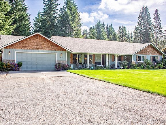 Beautifully maintained rambler on 4.64 acres! This spacious home offers hardwood floors throughout the main living areas and the open kitchen features included black stainless appliances, double oven with warming drawer, cherry wood cabinetry, quartz countertops, modern tile backsplash, soft-close cabinets, and a hidden appliance garage. Flexible layout provides an office den for additional space. Enjoy the oversized, fully insulated 2 car garage, fenced backyard with storage shed, sprinkler system, and plenty of room to roam. Home is equipped with a Guardian Generac, Culligan water purification system and heat pump for year-round comfort. Updated, move in ready, and set in a private country setting-this property truly has it all!