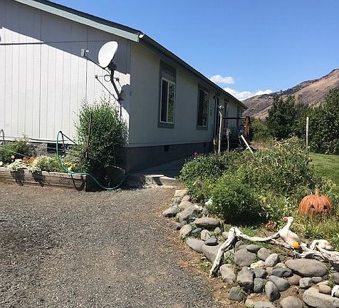 Manufactured home sits on 4.84 acres less than 400 feet from the Naches River. Solid foundation, established Cherry, Peach, Plum and Pear trees, fenced back yard, covered deck in the back with a greenhouse. Wood stoves in the house, greenhouse and garage. Central heat and air. 2 out buildings. Shared well. All appliances stay. Established Raspberry, Blackberry and Boysenberry bushes and numerous garden areas. The garage/shop offers built in Air Compressor, two 50 amp plugs, 50 amp plug for RV hook up. Wood shed has 2 cords wood for new owner. Centrally located to White Pass, Chinook Pass, less that 1 minute to the heart of Naches and less than 15 minutes to Yakima.