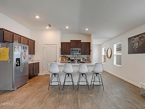 **NEWER BUILD**OPEN LAYOUT**SPLIT BED FLOOR PLAN** Move right into this newer build (2023) in the highly desirable community of The Arbors! This stunning 4-bedroom, 2-bathroom home features a sought-after SPLIT BEDROOM FLOOR PLAN and a convenient 2 CAR GARAGE. Enjoy the privacy offered by the charming front porch and a side entrance, leading into a spacious OPEN LAYOUT defined by thoughtfully curated and high-end finishes. Stylish woodlike LVP FLOORING flows throughout the main living areas, complemented by plush carpeting in the bedrooms and living room. The gourmet kitchen is a focal point, boasting a HUGE ISLAND/BREAKFAST BAR perfect for gathering and entertaining. Beyond your front door, you'll have access to RESORT STYLE AMENITIES within the community. The location is ideal just a few miles from the expansive River City Marketplace for all your shopping and dining needs, and close to Jacksonville International Airport. Don't miss this amazing opportunity!