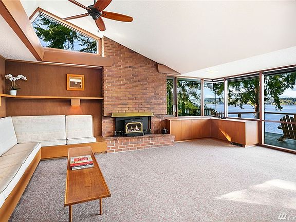 Unparalleled west side waterfront! Design influences of Frank Lloyd Wright blend with a private setting on the shores of Colvos Passage to create a superb, one-of-a-kind island retreat. A sun-filled entry courtyard is your first glimpse of the timeless appeal waiting to welcome you! Inside, this inviting home offers the iconic details and clean lines of organic design. Banks of windows face Puget Sound; the generous use of wood includes sleek built-in seating, recessed lighting and abundant storage. An attractive brick fireplace warms the living room on the main level, and glass doors open to a full-length view deck. A full bath is on the main floor; the lower level offers a rec room with its own fireplace, kitchenette, second full bath, utility room, and versatile garage space. Imagine the possibilities! Over an acre of Northwest forest makes this prized west side location very private and exceptionally beautiful! A new two bedroom septic system was just installed! More than 150' of waterfront is yours to explore, with a picnic area at the water's edge, charming boardwalk bulkhead and stairs to the beach. This is the place to experience island living at its best!