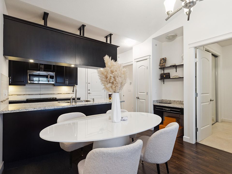 AMAZING NEW PRICE! RARELY available PENTHOUSE living by Quadra Homes! This INCREDIBLE 2 bed/2 bath TOP LEVEL residence exudes both form & function + offers VAULTED CEILINGS & AC. This former show-home has nothing but quality finishing’s throughout; gourmet kitchen that offers S/S appliances, granite countertops, a breakfast bar & oversized window. Enjoy ALL SEASONS w/ morning coffee & mtn views on your ENCLOSED PRIVATE BALCONY. Primary bedroom w/luxury spa-like bath, heated floors & elegant fixtures. Step out to exclusive amenities & natures walk in your backyard. Very convenient location with amazing walking score. No vehicle necessary to all shopping, restaurants, recreation, schools & West Coast station. 1 park & 1 locker. Offers will be presented on 10/20 @ 5pm.