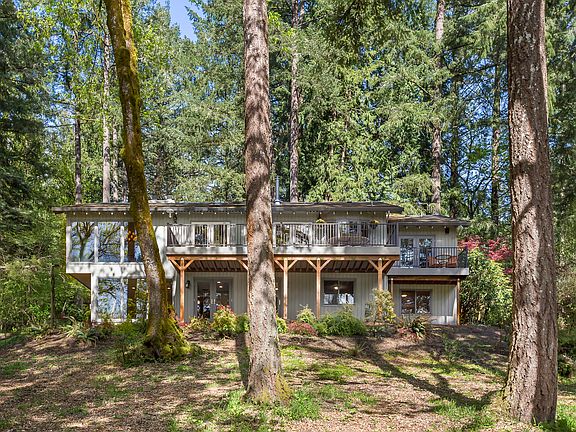 Open Sat 4:30-6:30. Low-maintenance, fully-updated rural oasis tucked away at the end of a paved driveway on private, forested land. Convenient main level living w/ natural light & an open floor plan perfect for entertaining. Modern, airy kitchen w/ quartz counters & hi-end appliances. Enjoy Oregon's natural beauty w/ 2 manicured acres, hobby orchard, fenced garden & 6.5 acres of pvt forest. 6-bay barn for work/hobby space or storage.